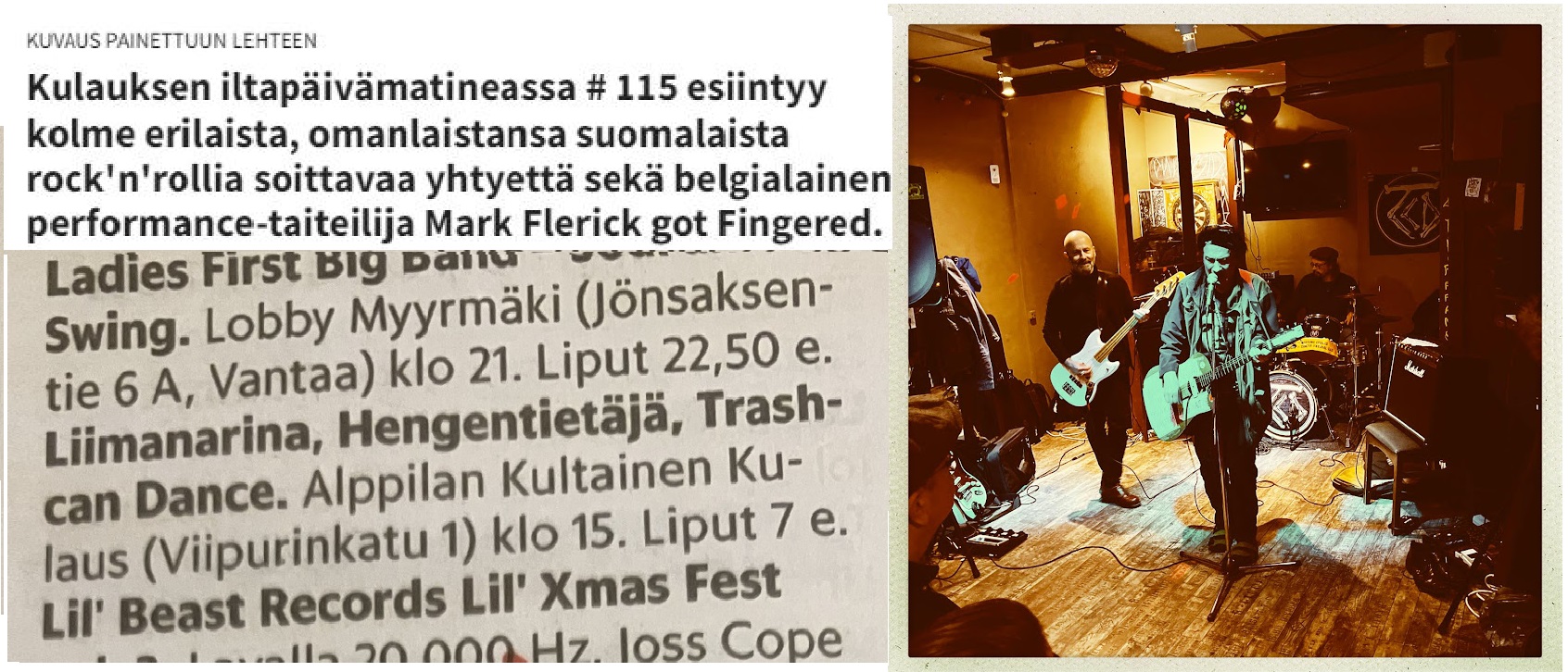 with Hullu ja Haisi, Hulda Huima, Koiran Näköinen Nainen +1 and yksityistilaisuudessa loungebändinä Matomeri