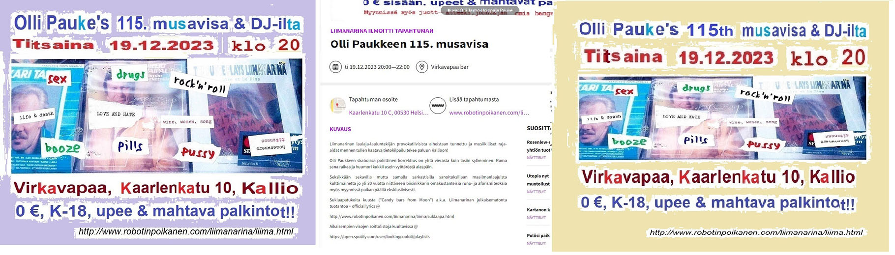who a.o. has been namechecked in Liimanarina's "Kuinka AA-klinikallakin tehdään poliisi" song.