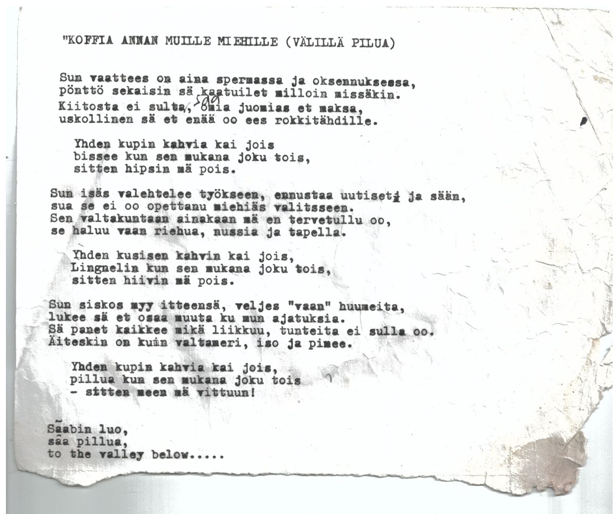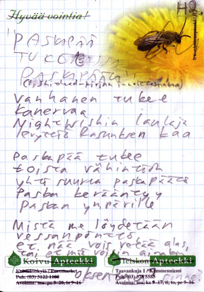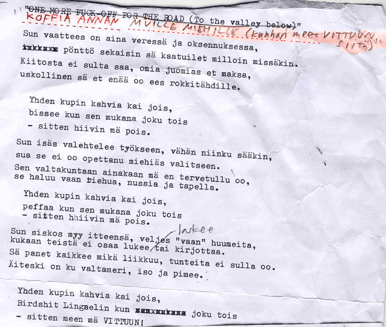 [levyl on viä tälanen säkeistö, mut Ölli ei jaxa opetella noin montaa gaykoille: