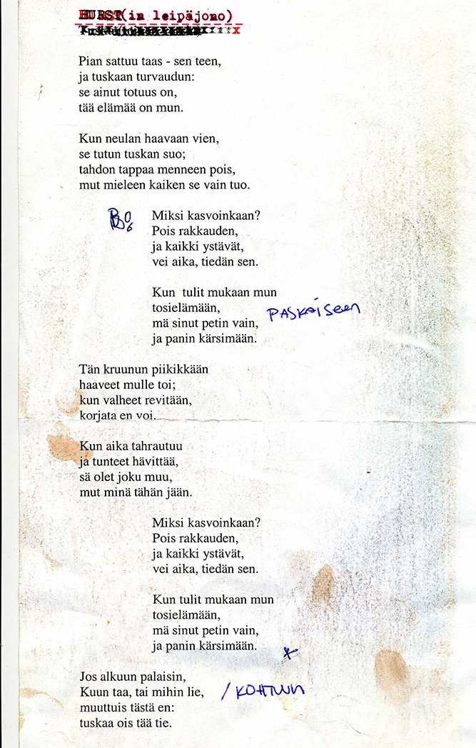 Tota biisiä esitettiin keikoilla viä vähä aika si (pre-Turku 8/2017) nimellä
